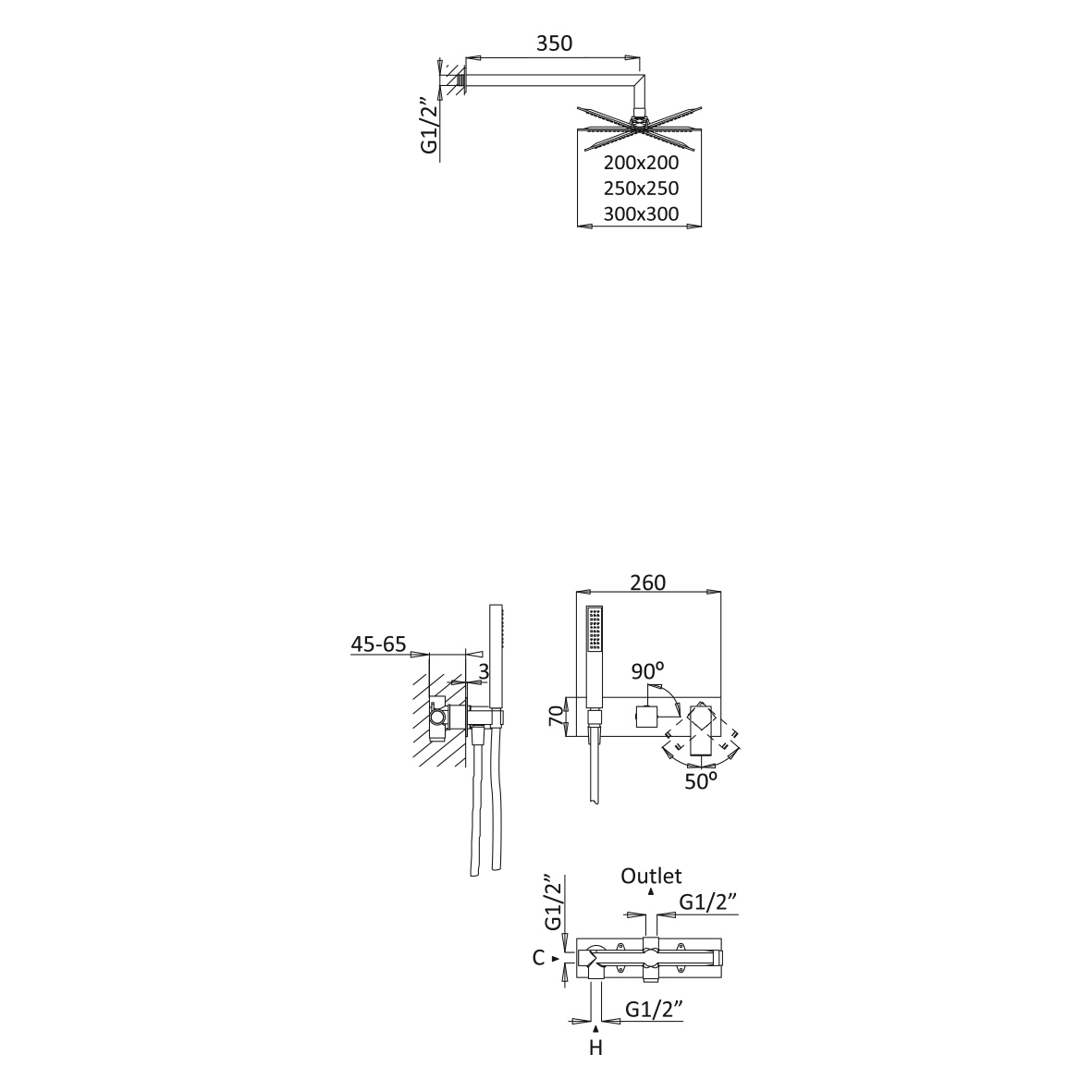 Bruma Linea Zestaw natryskowy 200 mm Podtynkowy z ramieniem ściennym chrom 1825712CR