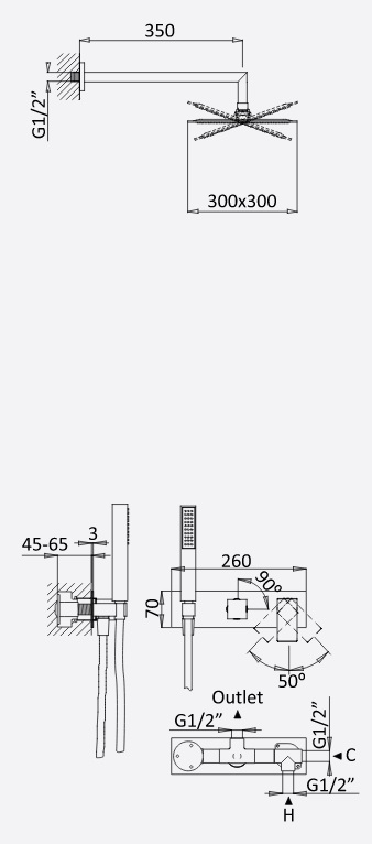 Bruma Linea Zestaw natryskowy 300 mm Podtynkowy z ramieniem ściennym Chrom 1825732CR