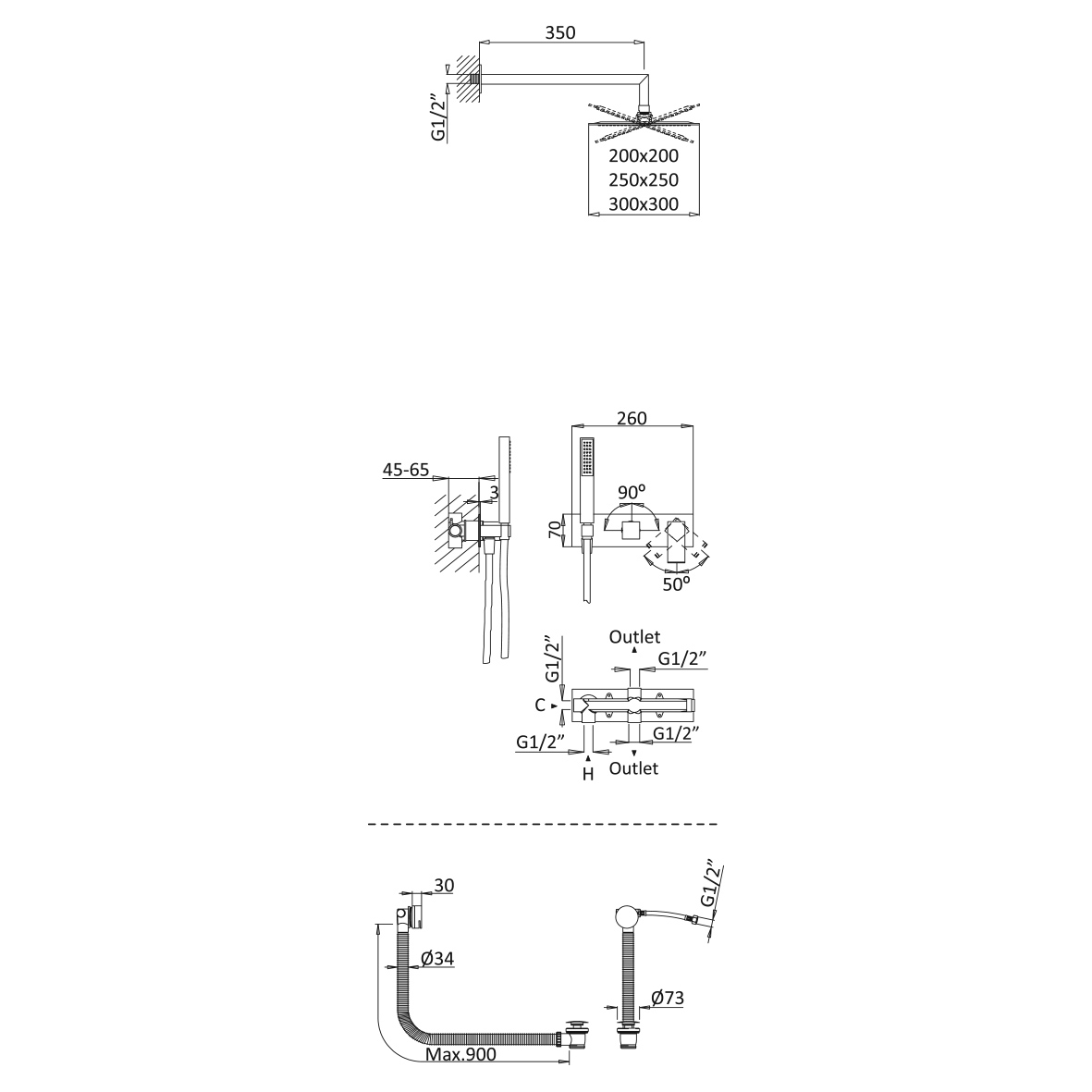 Bruma Linea Zestaw natryskowy 250 mm Podtynkowy z ramieniem ściennym Chrom 1823521CR