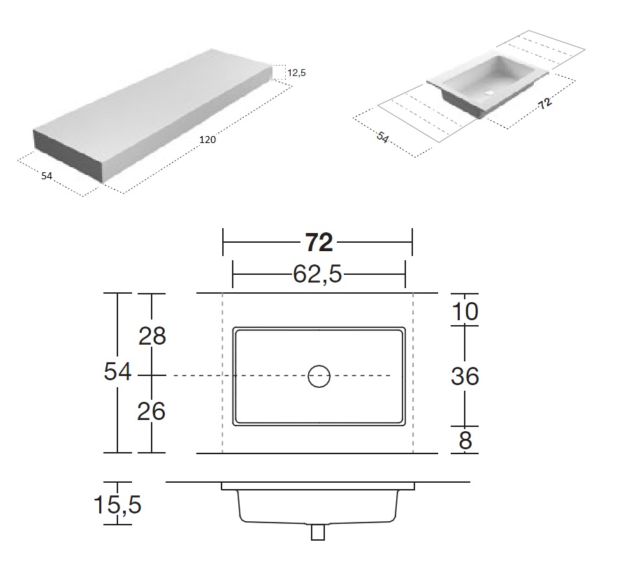 Antonio Lupi Nido Umywalka Zintegrowana z Blatem 54x120 cm satynowa BCS54/NIDO