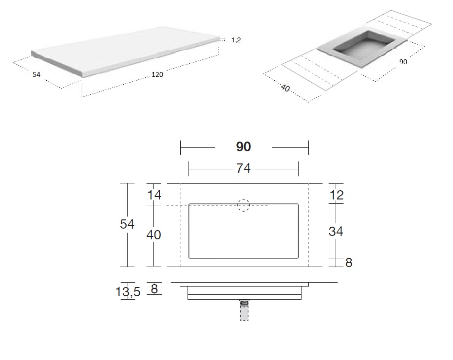 Antonio Lupi Myslot Umywalka Zintegrowana z Blatem 54x120 cm biała CR154/MYSLOT90