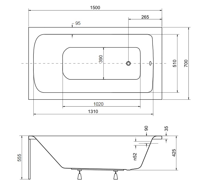 Besco Talia Wanna prostokątna 150x70 biała WAT-150-PK
