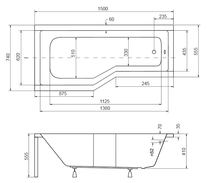 Besco Integra Wanna Do Zabudowy+Parawan 2-skrzydłowy Lewa 150x75 biała WAI-150-PL2