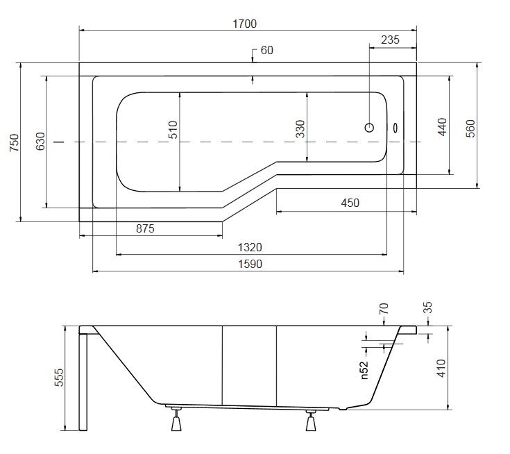 Besco Integra Wanna Do Zabudowy Lewa 170x75 biała WAI-170-PL