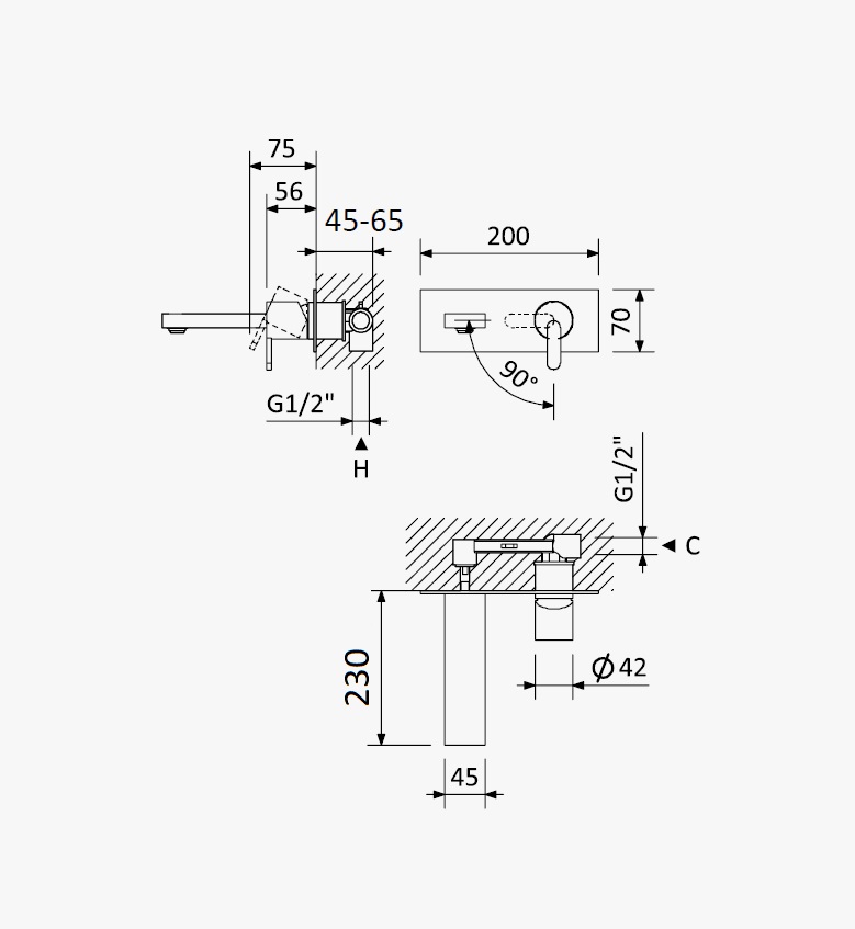 Bruma Lusa Bateria umywalkowa podtynkowa 230 mm Chrom 1019621CR