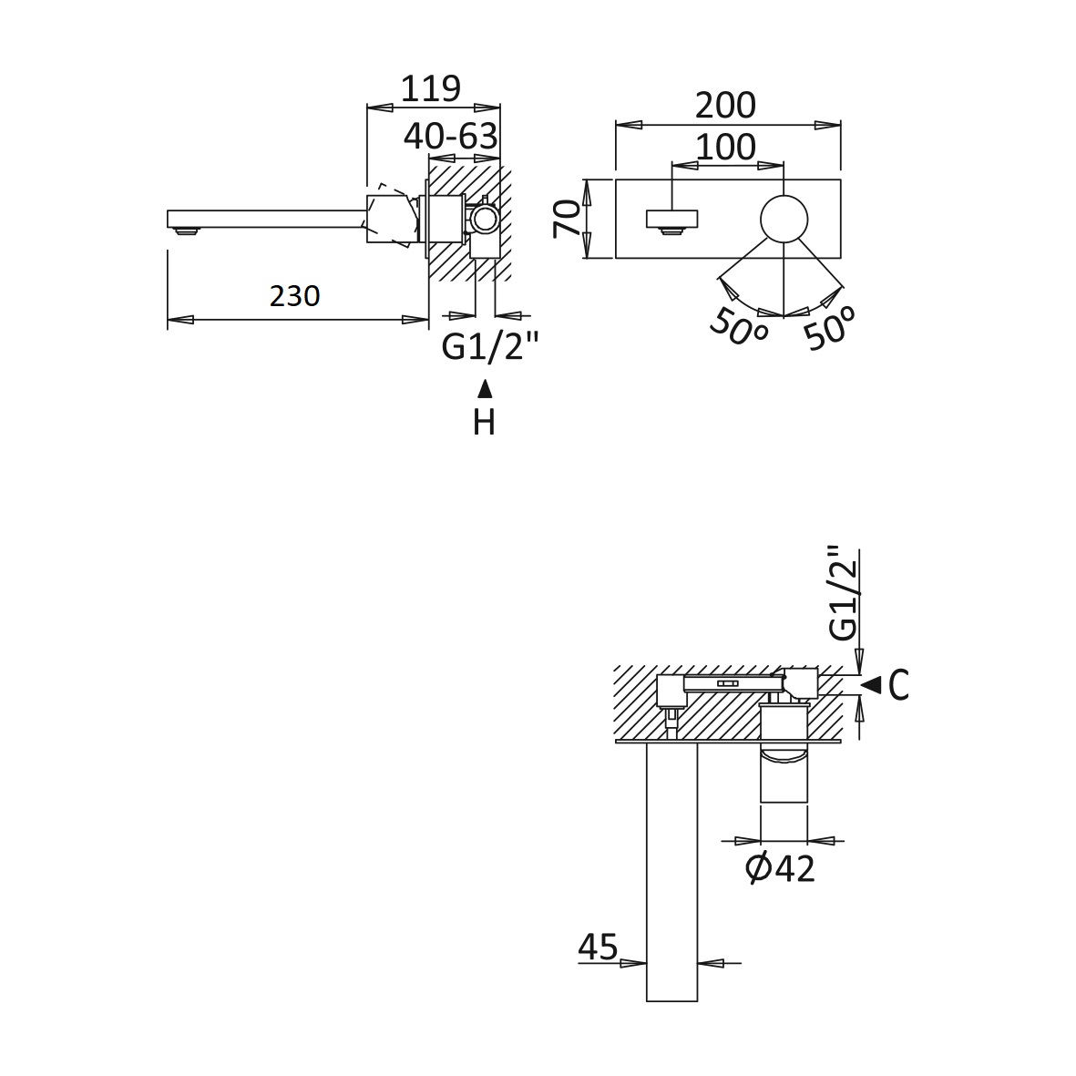 Długość wylewki: 230 mm