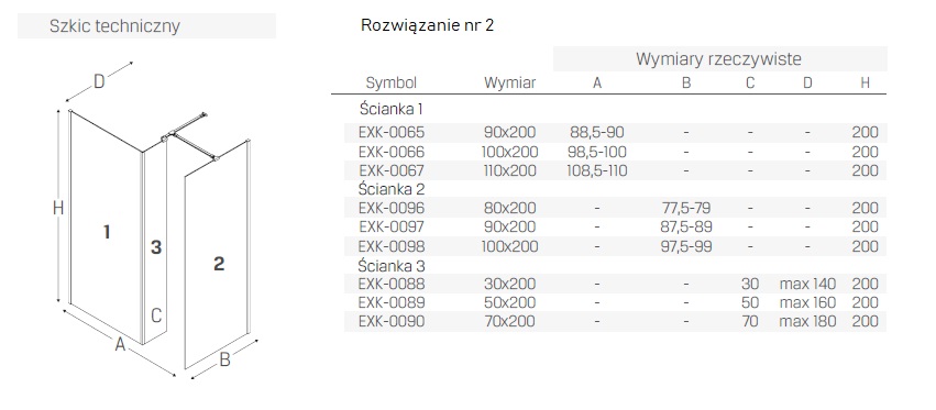- EXK-0096, EXK-0097, EXK-0098 oraz EXK-0088, EXK-0089, EXK-0090 (rozwiązanie nr 2)