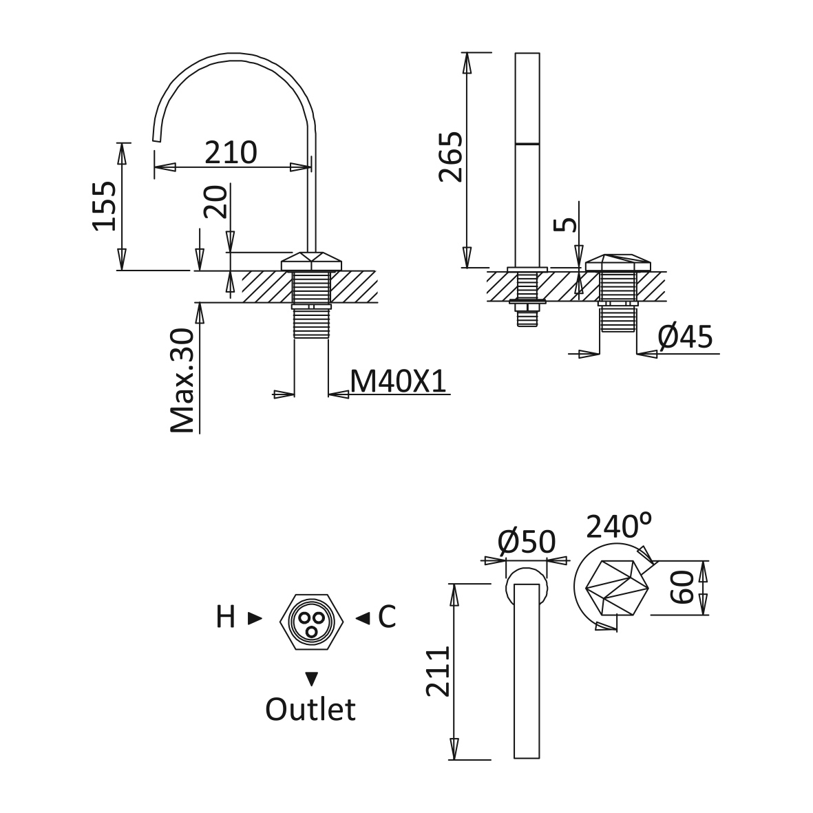 Bruma Utopia Bateria umywalkowa 2-otworowa bez korka Pure white 1838801PW