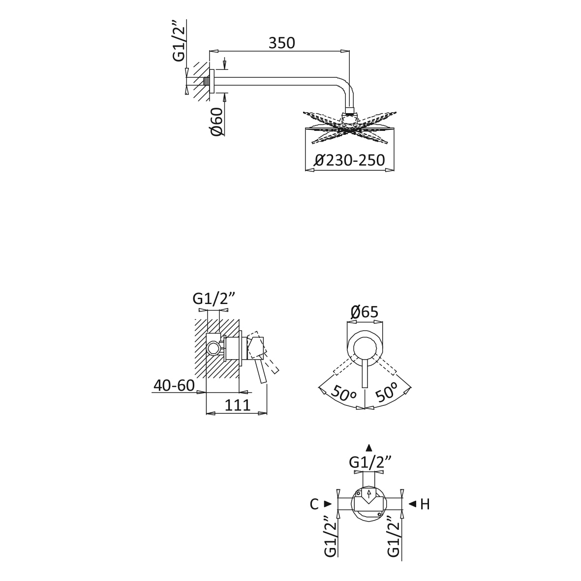 Średnica deszczownicy: 250 mm