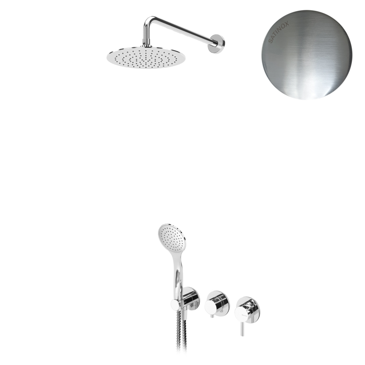 Bruma Lusitano Zestaw natryskowy 250 mm Podtynkowy z ramieniem ściennym i słuchawką Satinox 1075702ST