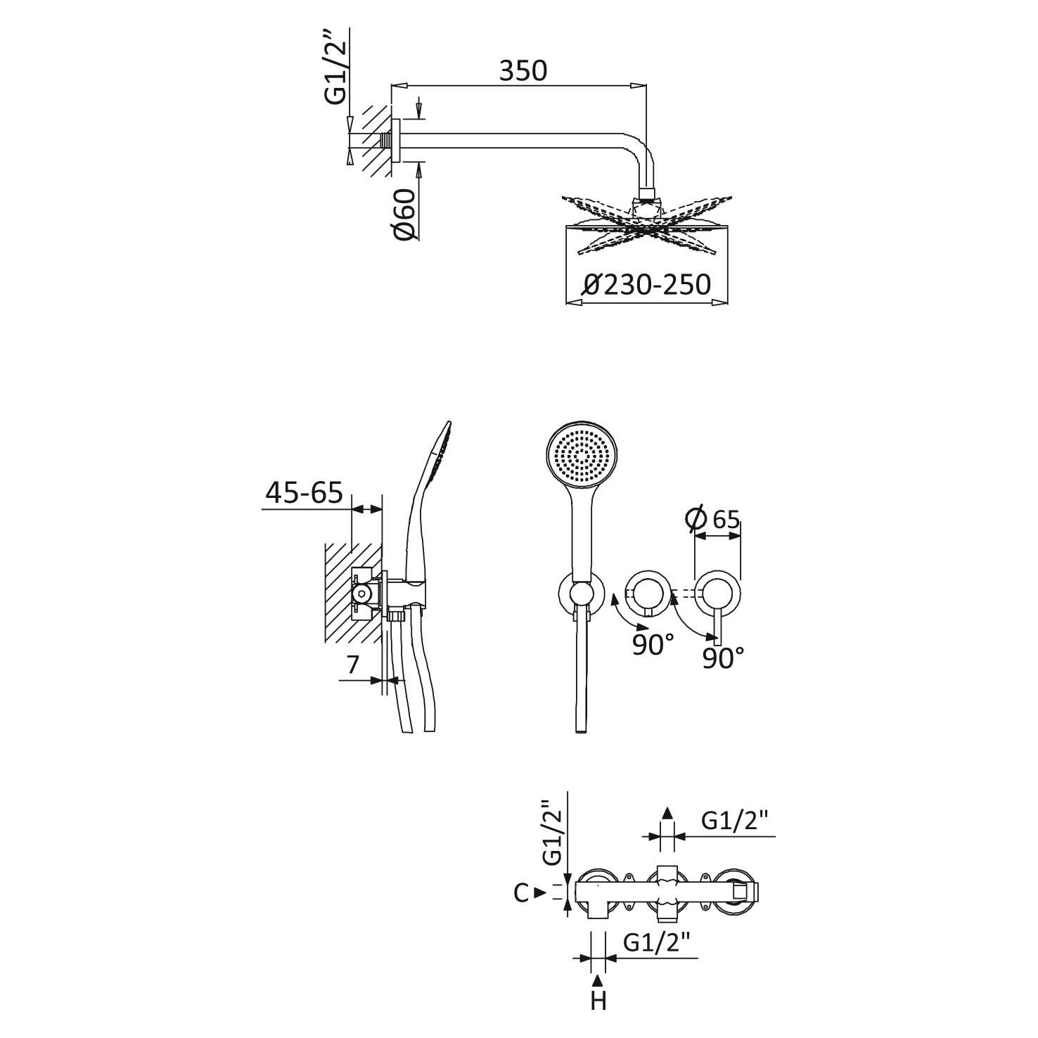 Bruma Lusitano Zestaw natryskowy 250 mm Podtynkowy z ramieniem ściennym i słuchawką satinox 1075702ST