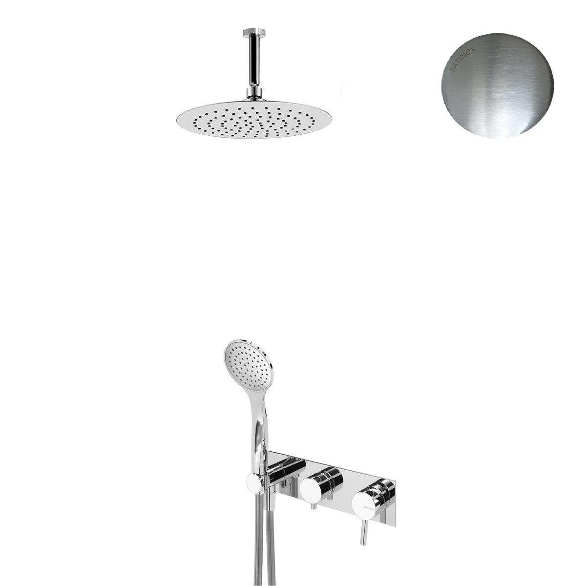 Bruma Lusitano Zestaw natryskowy 250 mm Podtynkowy z ramieniem sufitowym i słuchawką Satinox 1075802ST