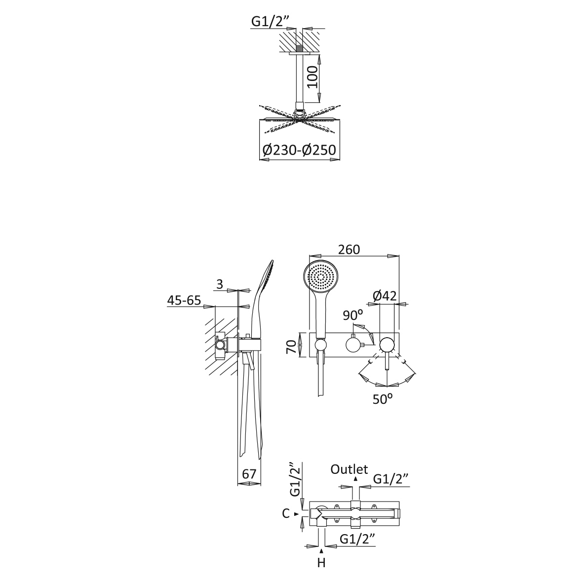Bruma Lusitano Zestaw natryskowy 250 mm Podtynkowy z ramieniem sufitowym i słuchawką Night sky 1075802NS