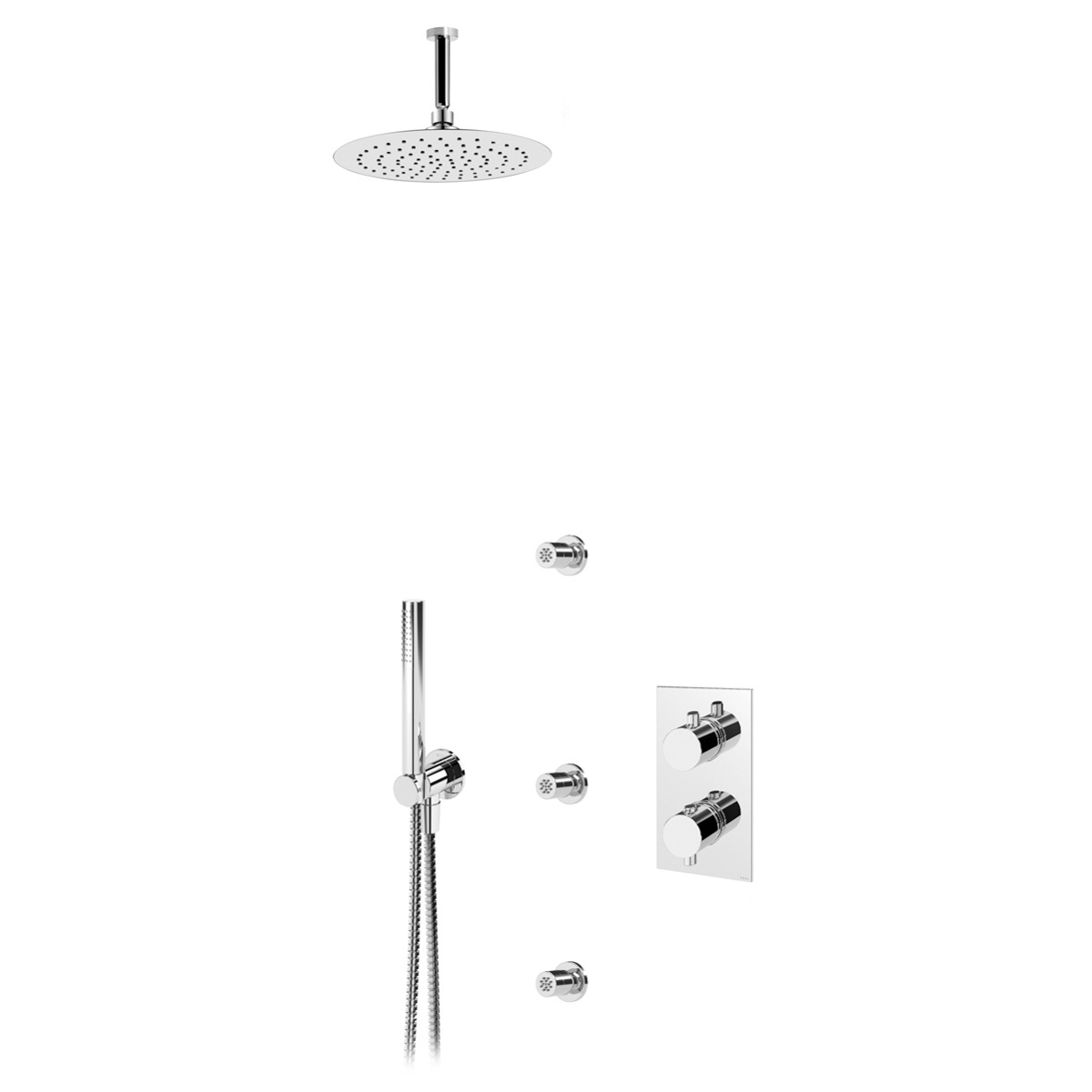 Bruma Leaf Zestaw natryskowy termostatyczny podtynkowy z deszczownicą Ø 250 mm sufitową z dyszami ściennymi Chrom 1386102CR
