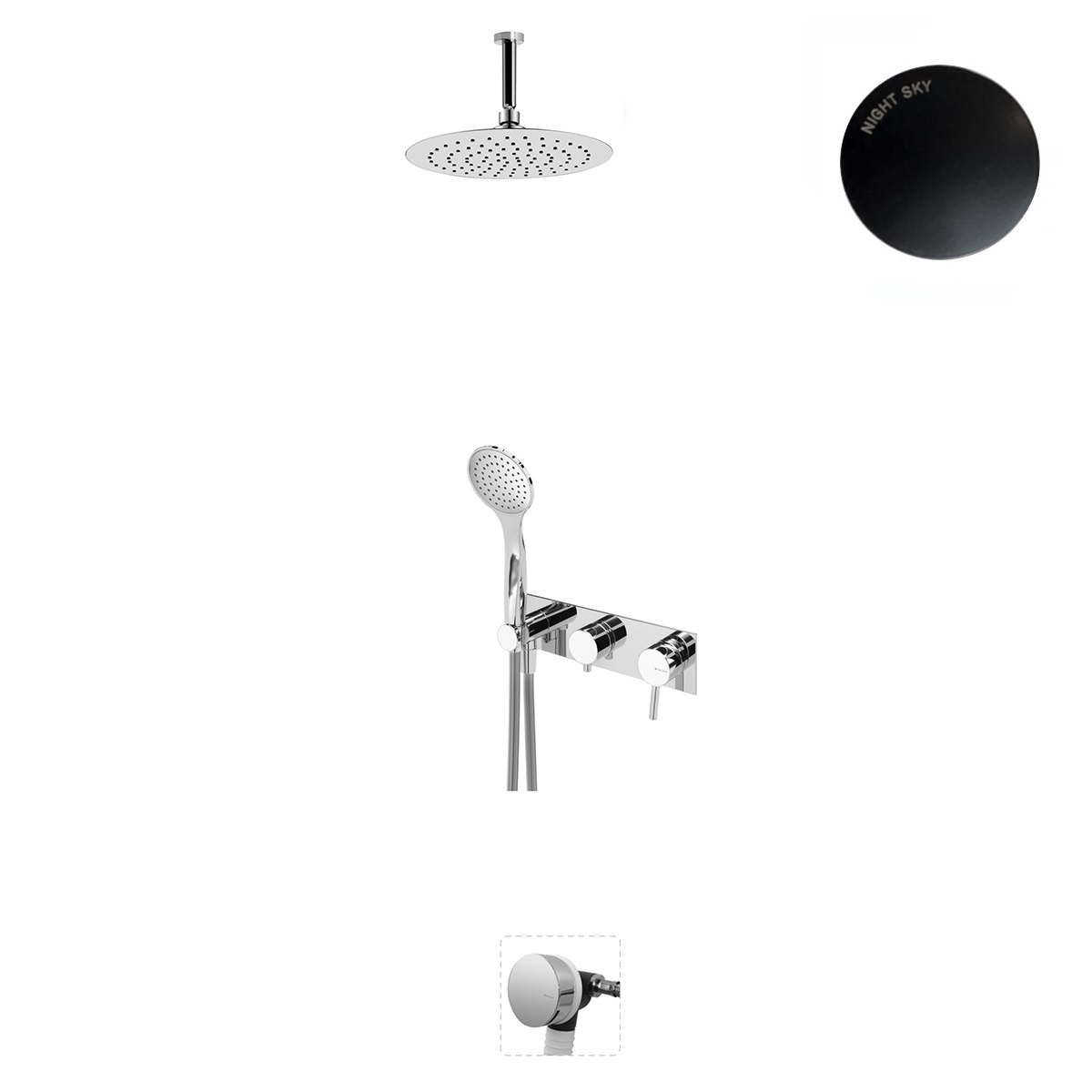 Bruma Lusitano Zestaw wannowo-natryskowy 250 mm z ramieniem sufitowym Night sky 1073602NS