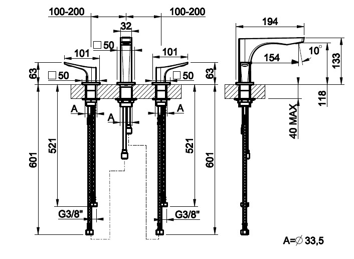 Gessi Rilievo Bateria umywalkowa 3-otworowa bez korka chrom 59012.031