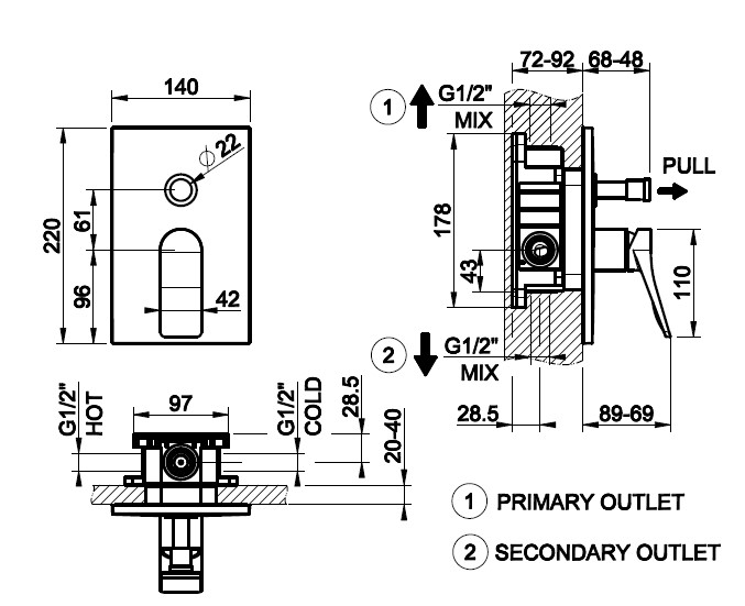 z przełącznikiem do prysznica