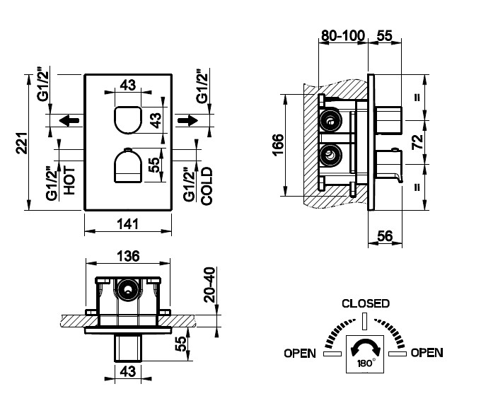 Gessi Rilievo Bateria prysznicowa termostatyczna ścienna element zewnętrzny chrom 59134.031