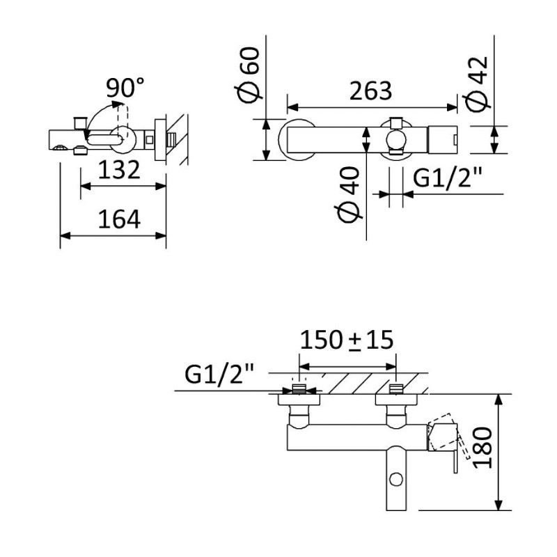 Bruma X-Alpha Bateria wannowo-natryskowa natynkowa Satin stainless steel 1860301IS