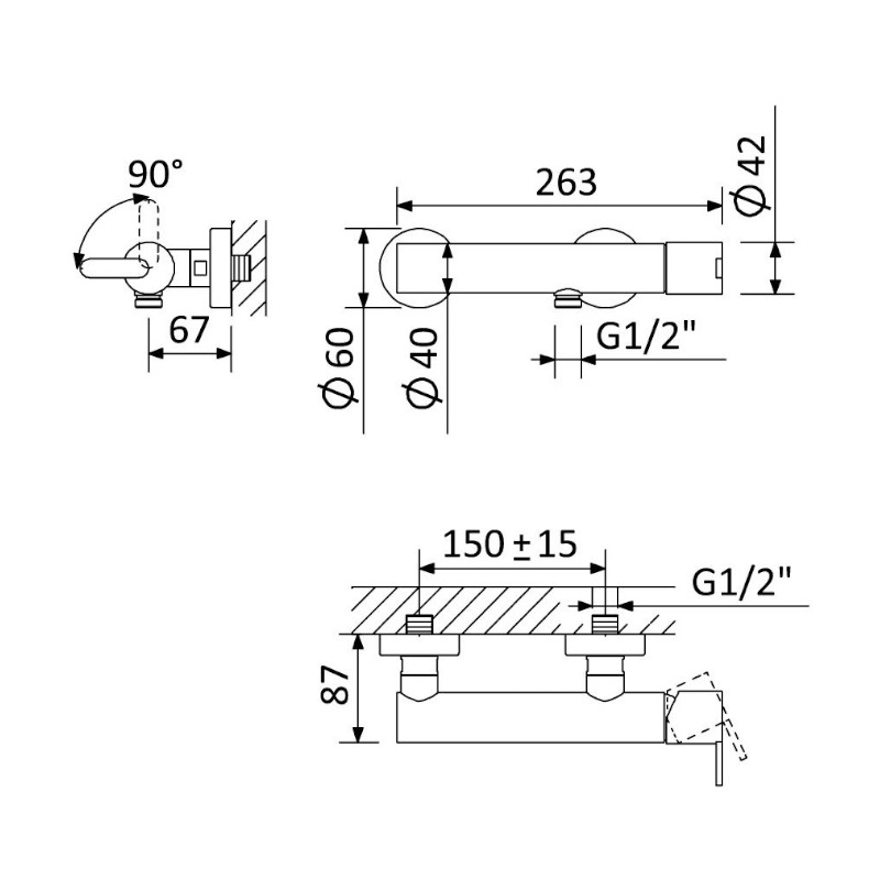 Odległość od ściany: 87 mm