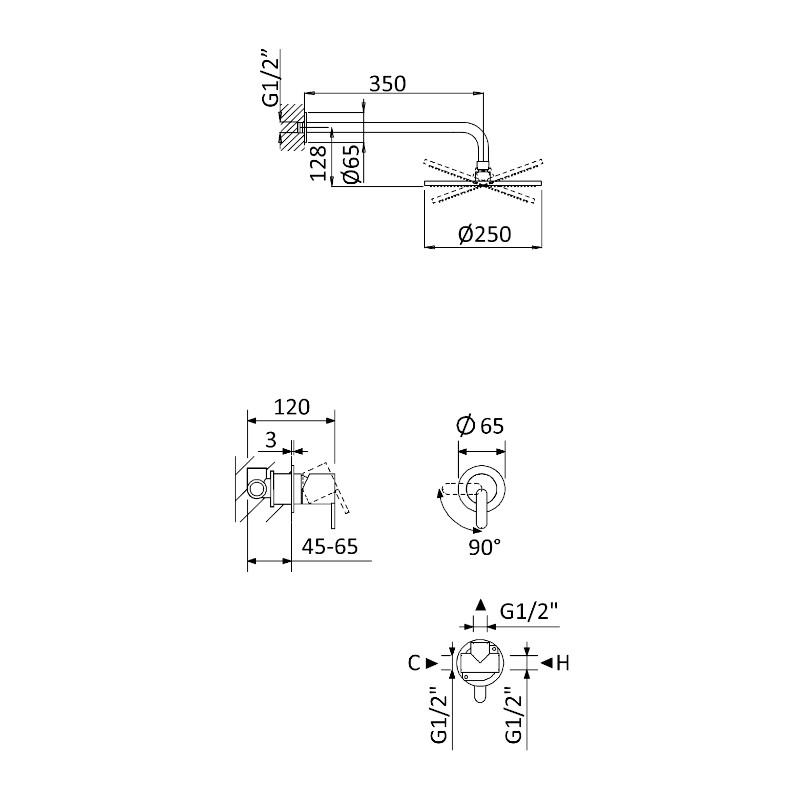 Średnica deszczownicy: 250 mm
