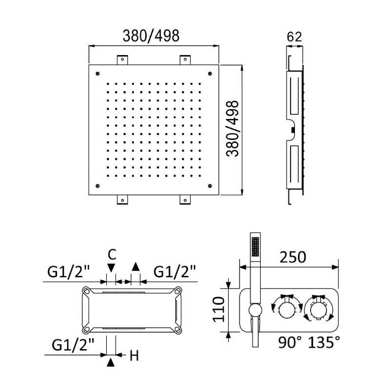 Głębokość montażu deszczownicy: 62 mm