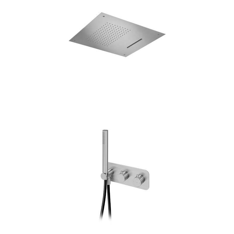 Bruma X-Alpha Zestaw natryskowy termostatyczny podtynkowy z deszczownicą 500x500 mm Satin stainless steel 1863814IS