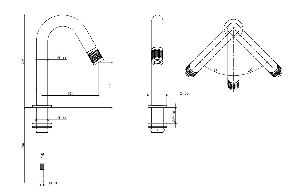 • Średnica wylewki: Ø30 mm
