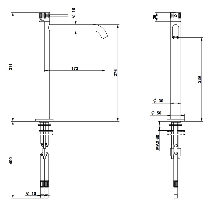 Bongio Time2020 Bateria umywalkowa wysoka jednootworowa brushed stainless steel 72532AS00