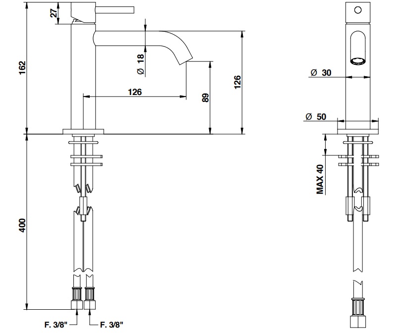 • Zasięg wylewki: 126 mm