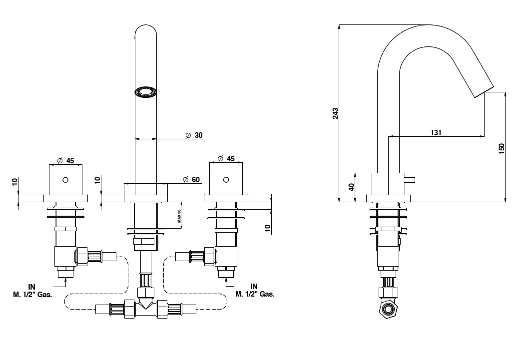 Bongio Time2020 Basic Bateria umywalkowa 3-otworowa brushed stainless steel 73501AS00