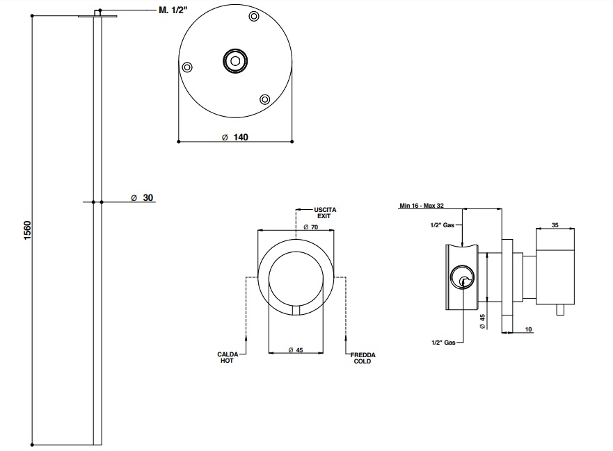 Bongio Time2020 Basic Bateria umywalkowa sufitowa brushed stainless steel 73977ASRM