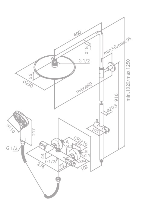 • Średnica deszczownicy: Ø250 mm