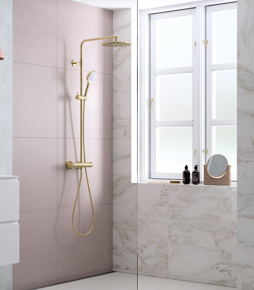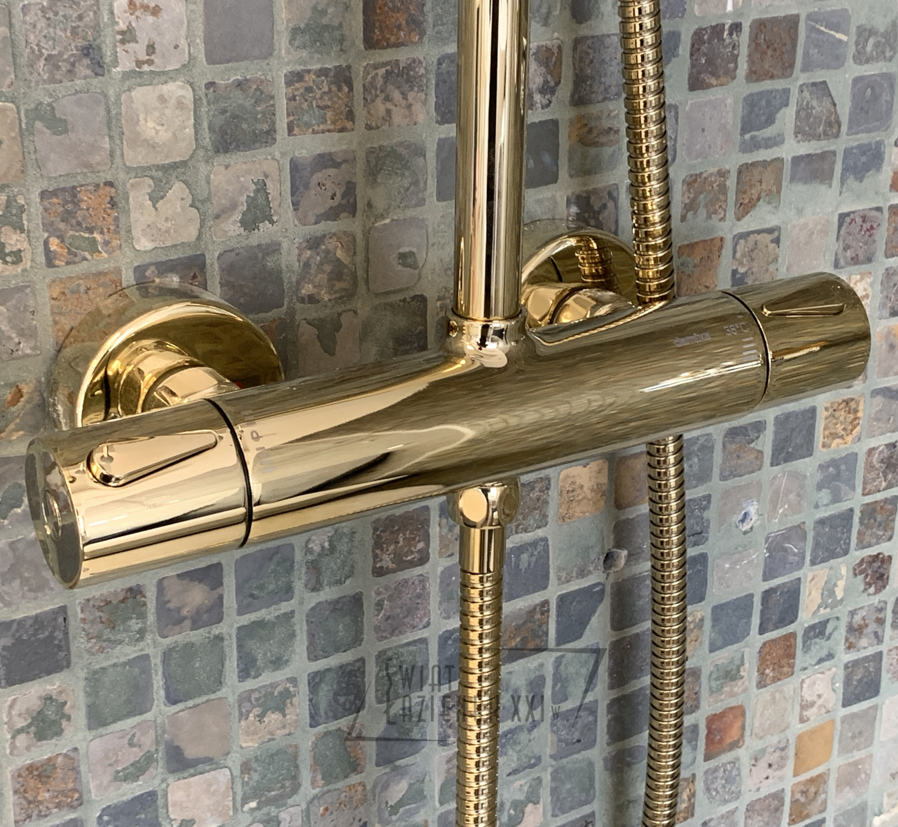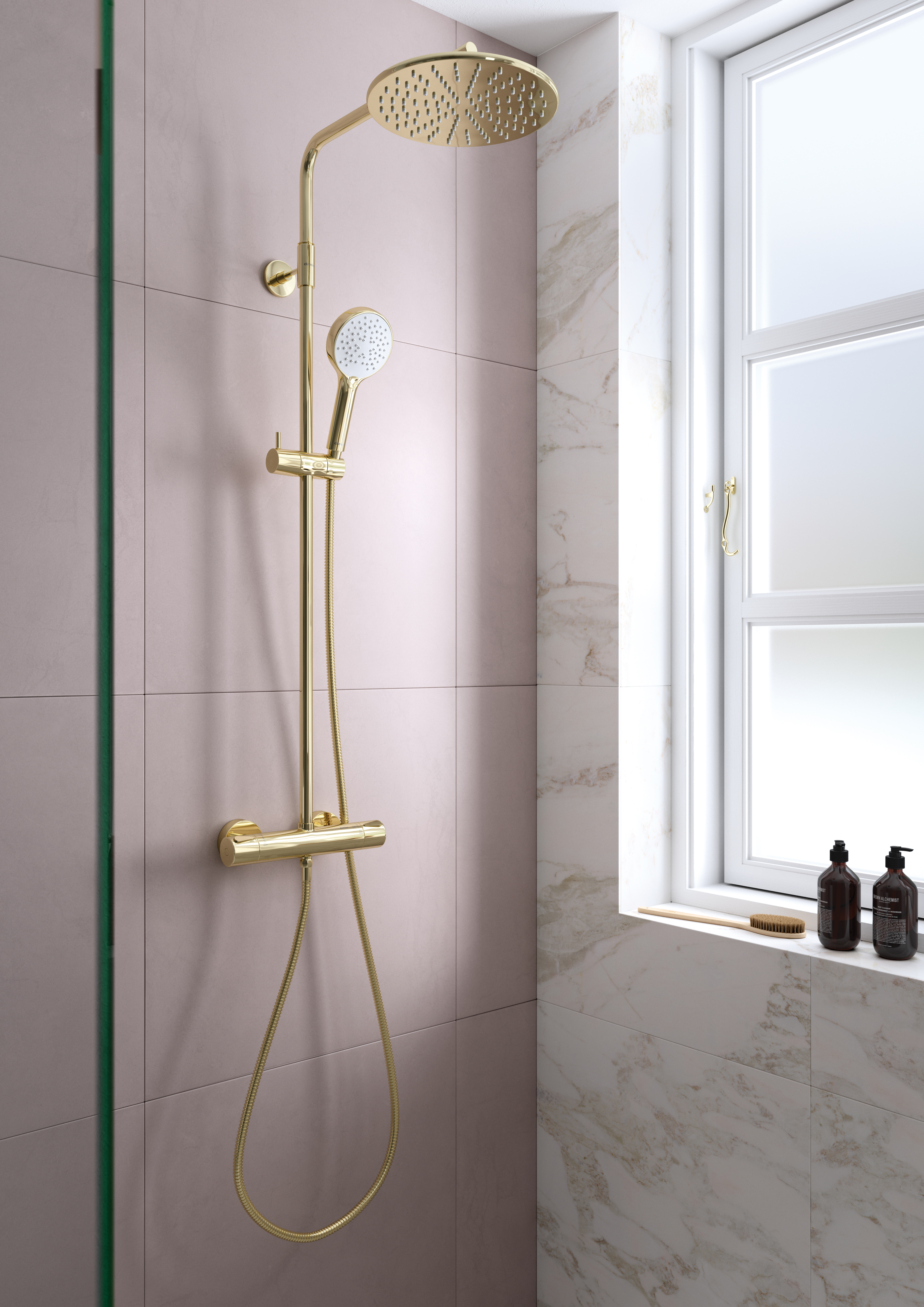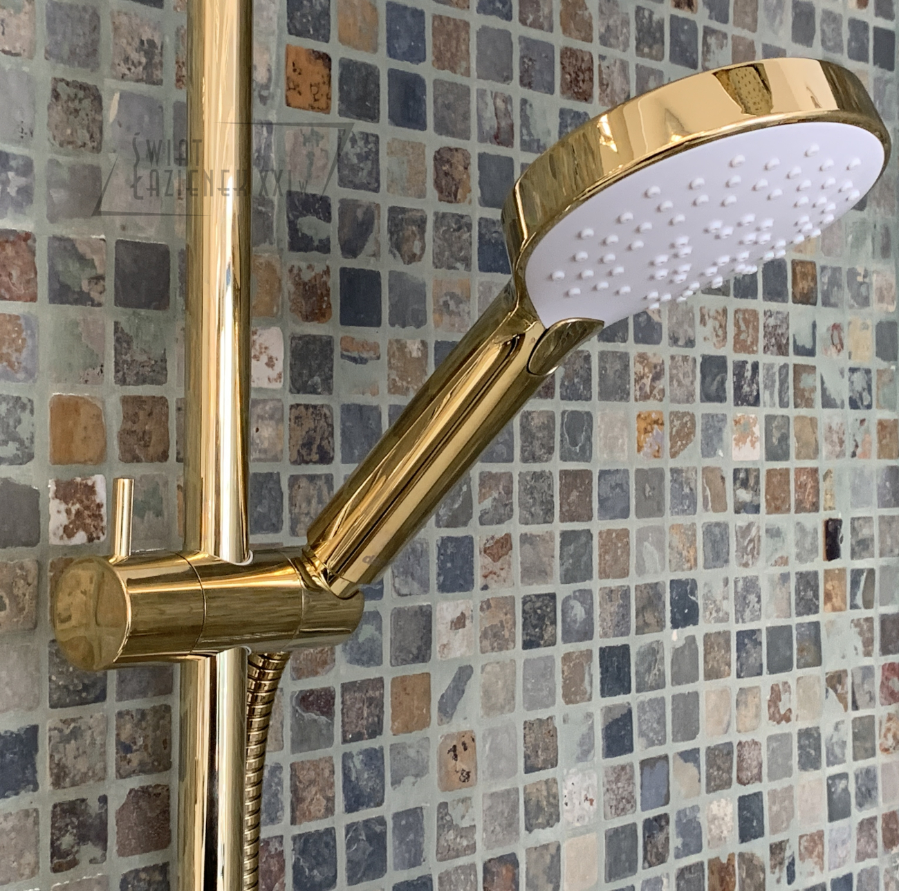 Damixa Silhouet Zestaw natryskowy z deszczownicą i słuchawką ścienny polerowany mosiądz 5795477