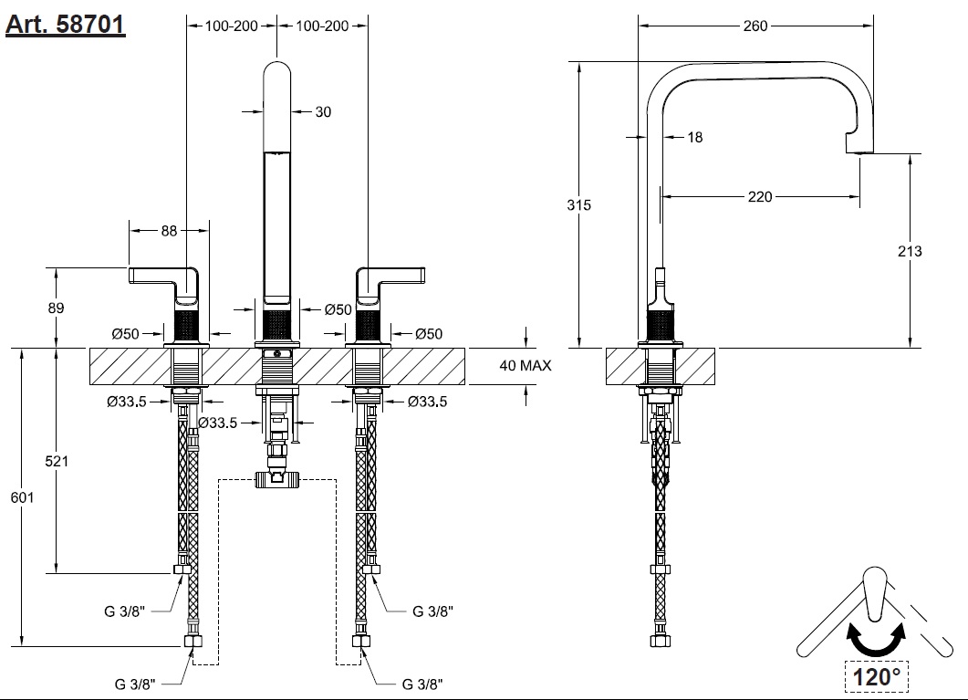 Gessi Inciso Bateria kuchenna 2-uchwytowa 3-otworowa Black Metal Brushed 58701.707