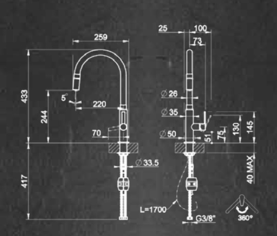 Gessi Mesh Bateria kuchenna jednouchwytowa 1-otworowa Finox/Matte Black 60003.599