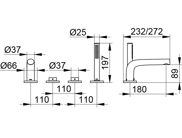 Montaż 4-otworowy na brzegu wanny