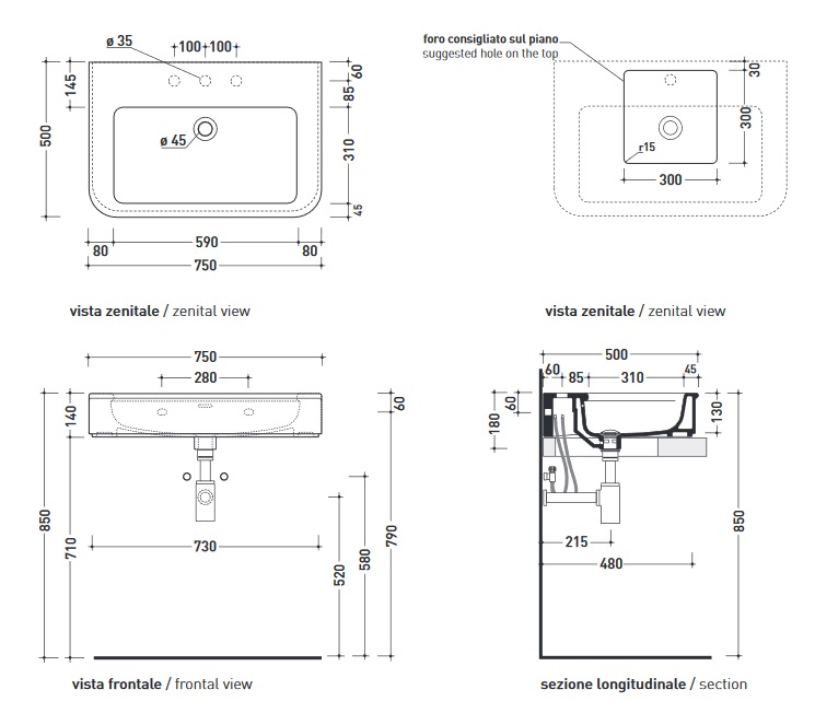 Flaminia Madre Umywalka stawiana na blat/ścienna 75x50 cm Nero MA75LNER