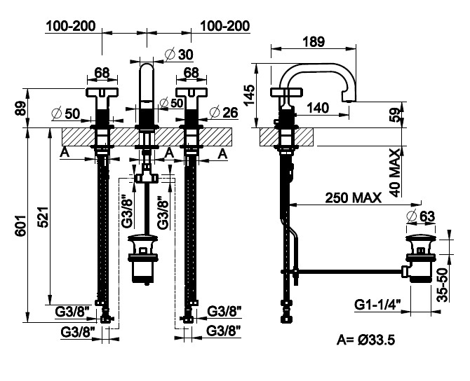 Gessi Inciso + Bateria umywalkowa 3-otworowa z korkiem chrom 58111.031