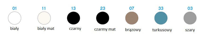 Produkt dostępny w kolorach: Biały mat, Czarny połysk, Czarny mat, Brązowy, Turkusowy, Szary
