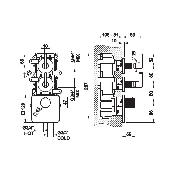 Gessi Inciso Bateria natryskowa termostatyczna podtynkowa Black Metal Brushed PVD 58214.707