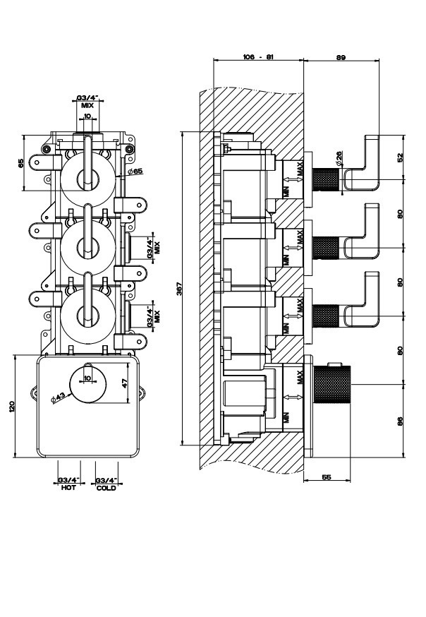 Gessi Inciso Bateria natryskowa termostatyczna podtynkowa Black Metal Brushed PVD 58216.707