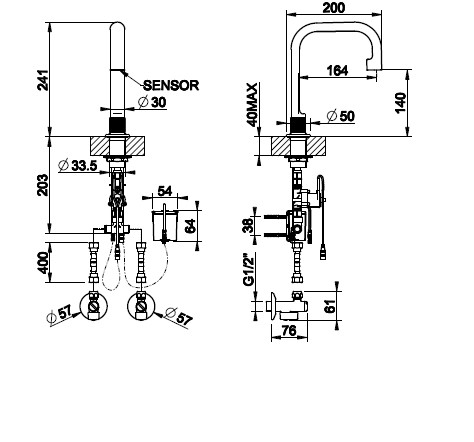 Gessi Inciso Bateria umywalkowy jednootworowa elektroniczna Black Metal Brushed PVD 58023.707