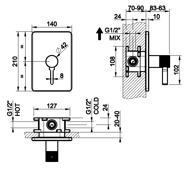 Gessi INCISO Mieszacz ścienny element zewnętrzny Black Metal Brushed PVD 58061.707