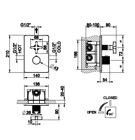 Gessi INCISO Bateria prysznicowa termostatyczna ścienna z przełącznikiem 1-drożnym element zewnętrzny Black Metal Brushed PVD 58232.707