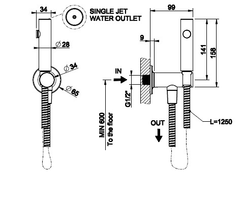 Gessi INCISO Zestaw bidetka z przyłączem Black Metal Brushed PVD 58151.707