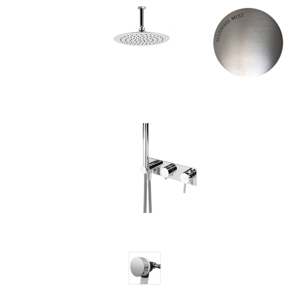 Bruma Lusitano Zestaw wannowo-natryskowy Ø 250 mm z ramieniem sufitowym Morning Mist 1073602MM