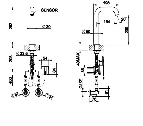 Elektroniczny bateria umywalkowa z regulacją temperatury i natężenia przepływu wody