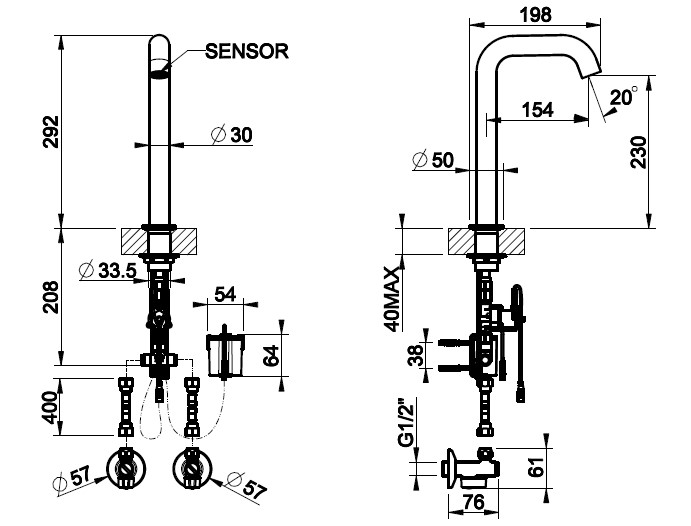 Gessi INTRECCIO Bateria umywalkowa elektroniczna jednootworowa element zewnętrzny steel brushed 54180.239