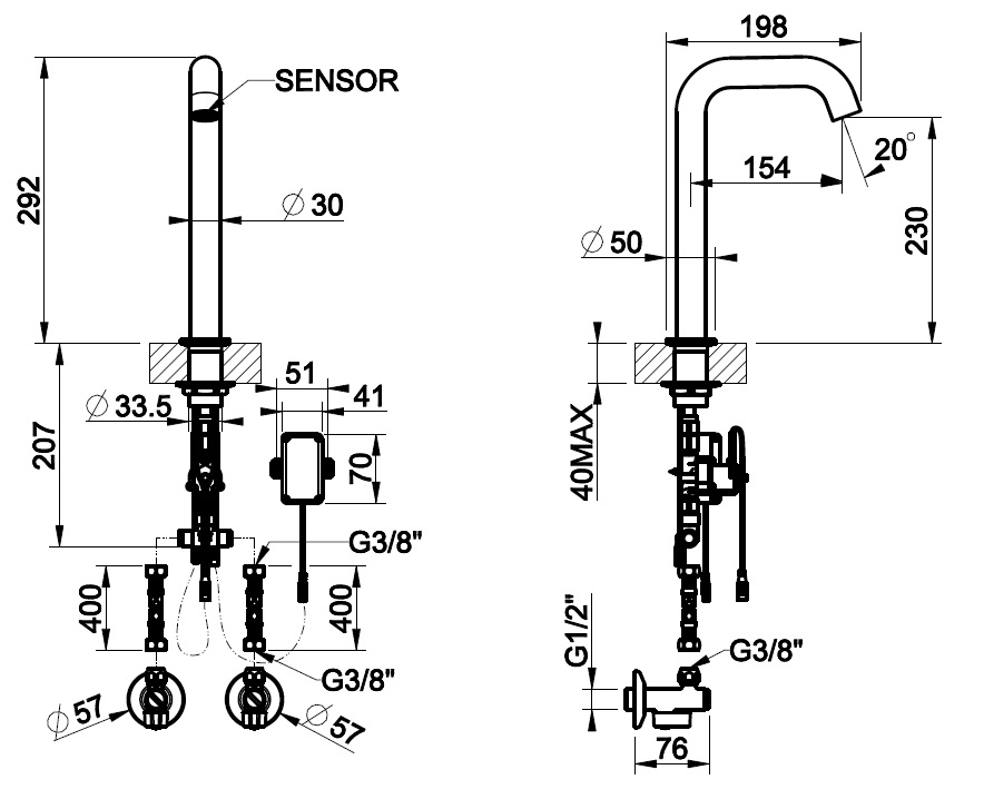 Elektroniczny bateria umywalkowa z regulacją temperatury i natężenia przepływu wody